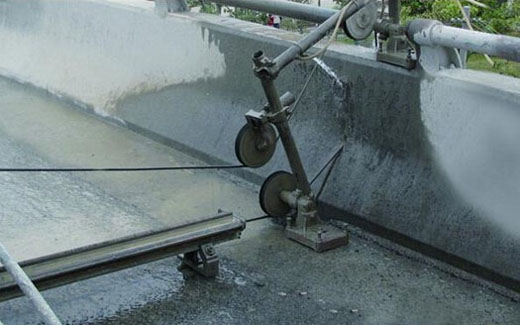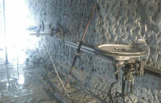 金剛石繩鋸切割是金剛石繩索在液壓馬達驅(qū)動下繞切割面高速運動研磨切割體,完成切割工作。由于使用金剛石單晶做為研磨材料,故此可以對石材、鋼筋混凝土等堅硬物體進行切割。