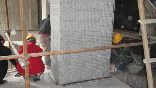 鋼絲繩網(wǎng)片聚合物砂漿加固技術(shù)是鋼絲繩網(wǎng)片通過粘合強(qiáng)度及彎曲強(qiáng)度優(yōu)秀的滲透性聚合物砂漿附著,與原本的混凝土形成一體,共同承載荷載作用的彎矩和剪力。