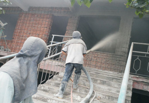 噴射混凝土是依靠高速噴射式時集料的反復(fù)連續(xù)撞擊壓密混凝土,與混凝土、磚石、鋼材有很高的粘結(jié)強(qiáng)度。當(dāng)與鋼筋網(wǎng)聯(lián)合使用可很好的在結(jié)合面上傳遞拉應(yīng)力和剪應(yīng)力,能大幅度地提高砌體承載力,加強(qiáng)整體性。